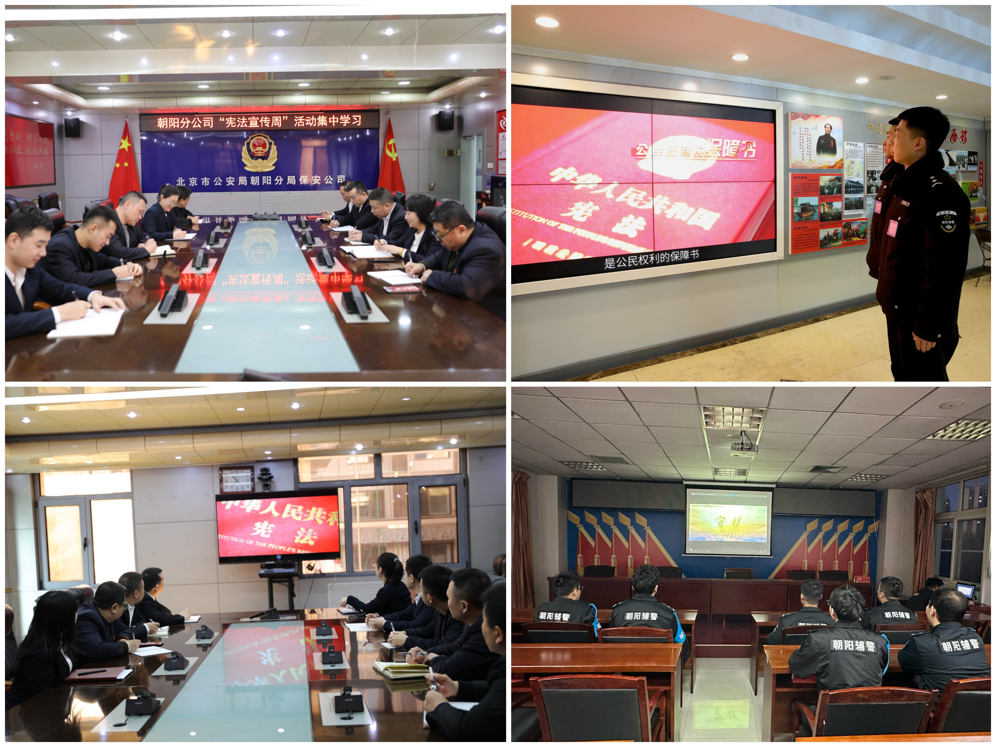 公司各基层驻勤队通过电视、电脑组织辅警、保安队员学习观看了北京市“12·4”国家宪法日主题宣传片《守护》、集中学习《宪法》《民法典》知识等,积极营造宪法学习宣传的浓厚氛围,大力弘扬宪法精神,维护宪法权威,争做宪法的崇尚者、遵守者、捍卫者!
