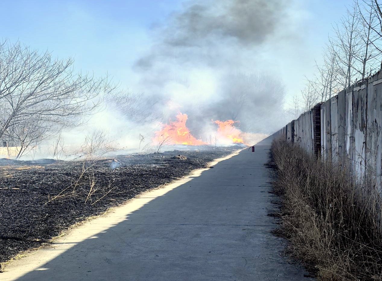 3月8日10时许,公司驻皮村流管站流管员杨光准备入户检查,刚出门就看见不远处春雨果园和中农果园夹道中间冒起了黑烟并伴有火苗。杨光高度敏感敏锐,按照应急处置流程,第一时间联系村里消防队救援,并将情况上报流管站值班领导。他自己则抄起灭火器就赶向火源处进行扑救。由于火势过大,着火面积约30平方米,直至消防队到达现场时,火势仍未得到控制。