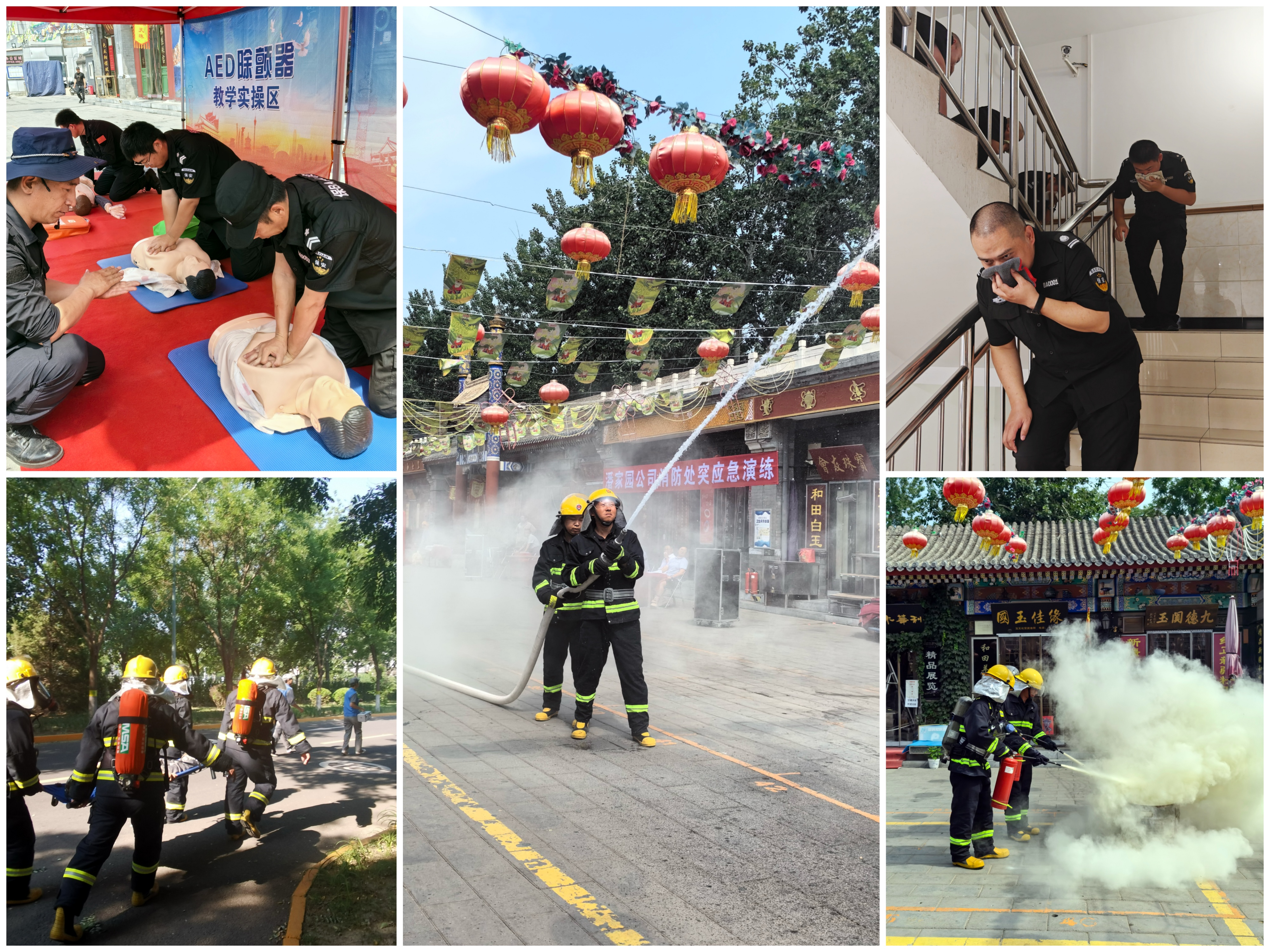 公司机关组织办公楼内工作人员通过观看主题宣传片、事故警示教育片、开展安全教育大讨论等活动,增强了员工的安全防范意识和自救互救能力;驻朝阳区职工大学保安队通过召开安全生产学习教育主题班队会、对消防通道等重点部位进行安全隐患大排查、开展安全应急疏散演练等,全面提升了队员的应急处置能力和团队协作能力;驻潘家园旧货市场保安队参加了客户单位组织开展的安全月演练,通过参演微型消防站出警灭火器灭火、地下消防栓出水及AED除颤器急救等科目,运用日常训练积攒的经验和熟练的技能操作,向客户单位及商户们展现了保安队的专业性,受到了客户领导的一致好评……