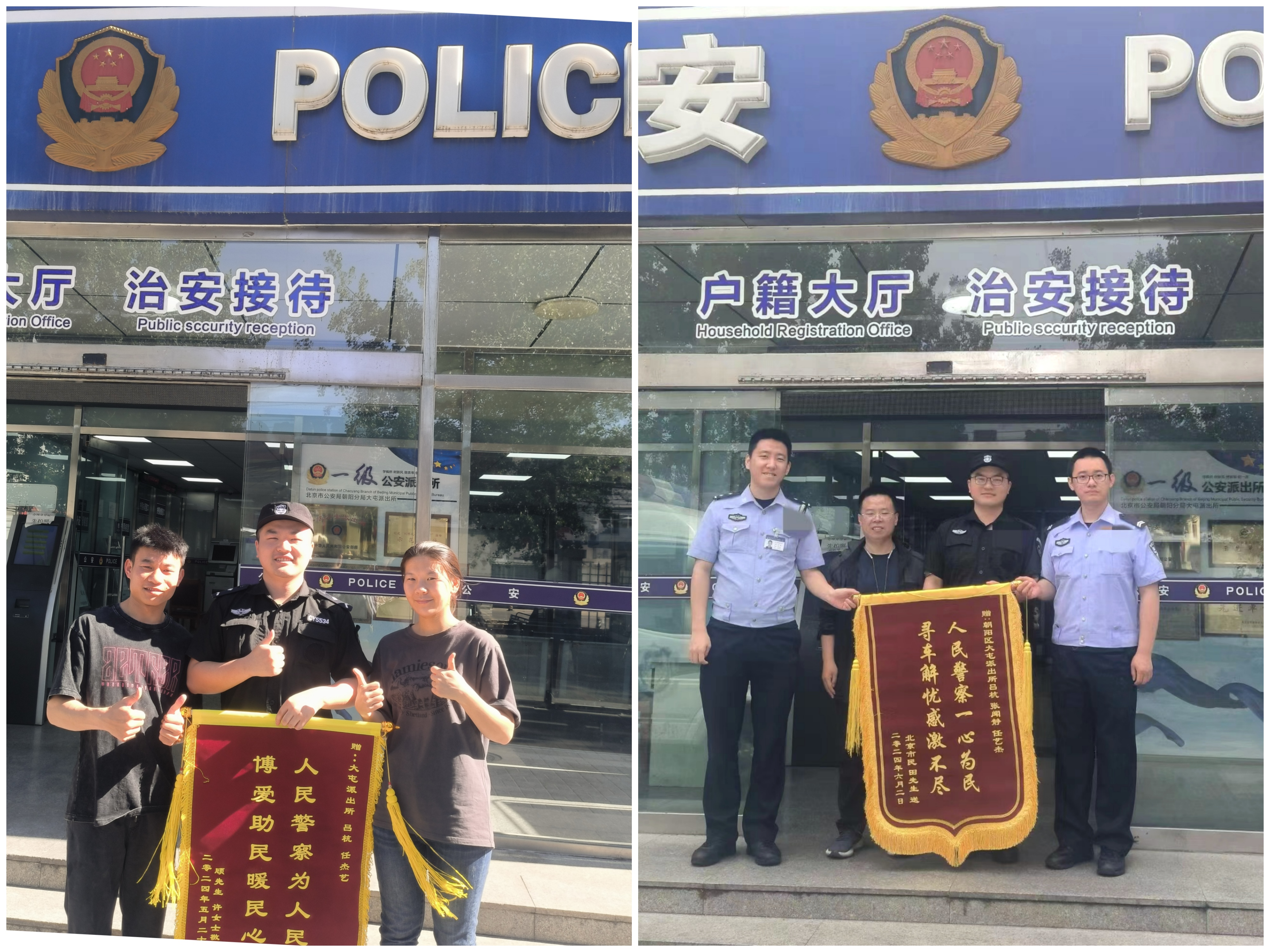 近期,公司协勤队员履职尽责,利用视频监控系统接连帮助群众寻回丢失、被盗物品,全力守护群众财产安全。驻呼家楼派出所协勤中队傅秋峰、王瑶等4人熟练运用视频监控系统,并凭借丰富的工作经验,迅速破获盗窃案件2起,追回被盗电动自行车2辆。驻大屯派出所协勤中队任艺杰调到视频监控岗仅3个月,却已熟练掌握了岗位技能,他耐心细致、尽职尽责,帮助田先生、许女士相继成功寻回丢失物品,收到两面锦旗。