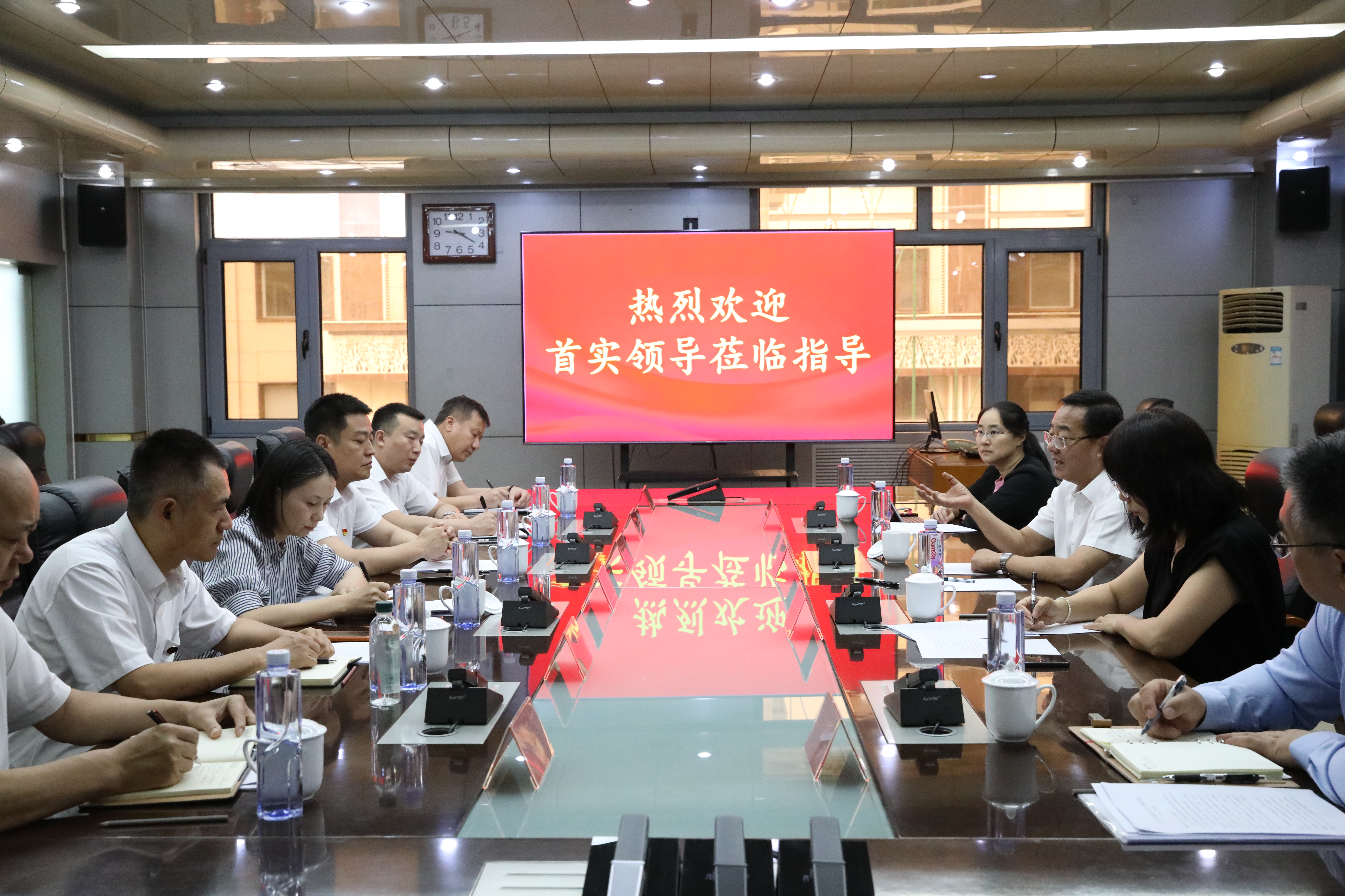 8月2日上午,首都实业投资有限公司党委副书记、董事、总经理李军一行4人,在北京市保安服务有限公司总经理孙伟等人陪同下,到公司调研指导工作。