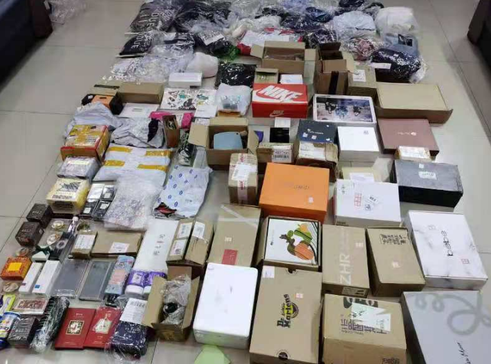 11月12日,打击组吕守龙、刘一凡、林闯在主管民警带领下,对嫌疑人落脚点展开走访摸排,确定了其居住房间门牌号,果断出击,于当日晚18时一举将其抓获,并起获被盗物品百余件,以及大量写有该人自己姓名但地址却各不相同的快递盒。