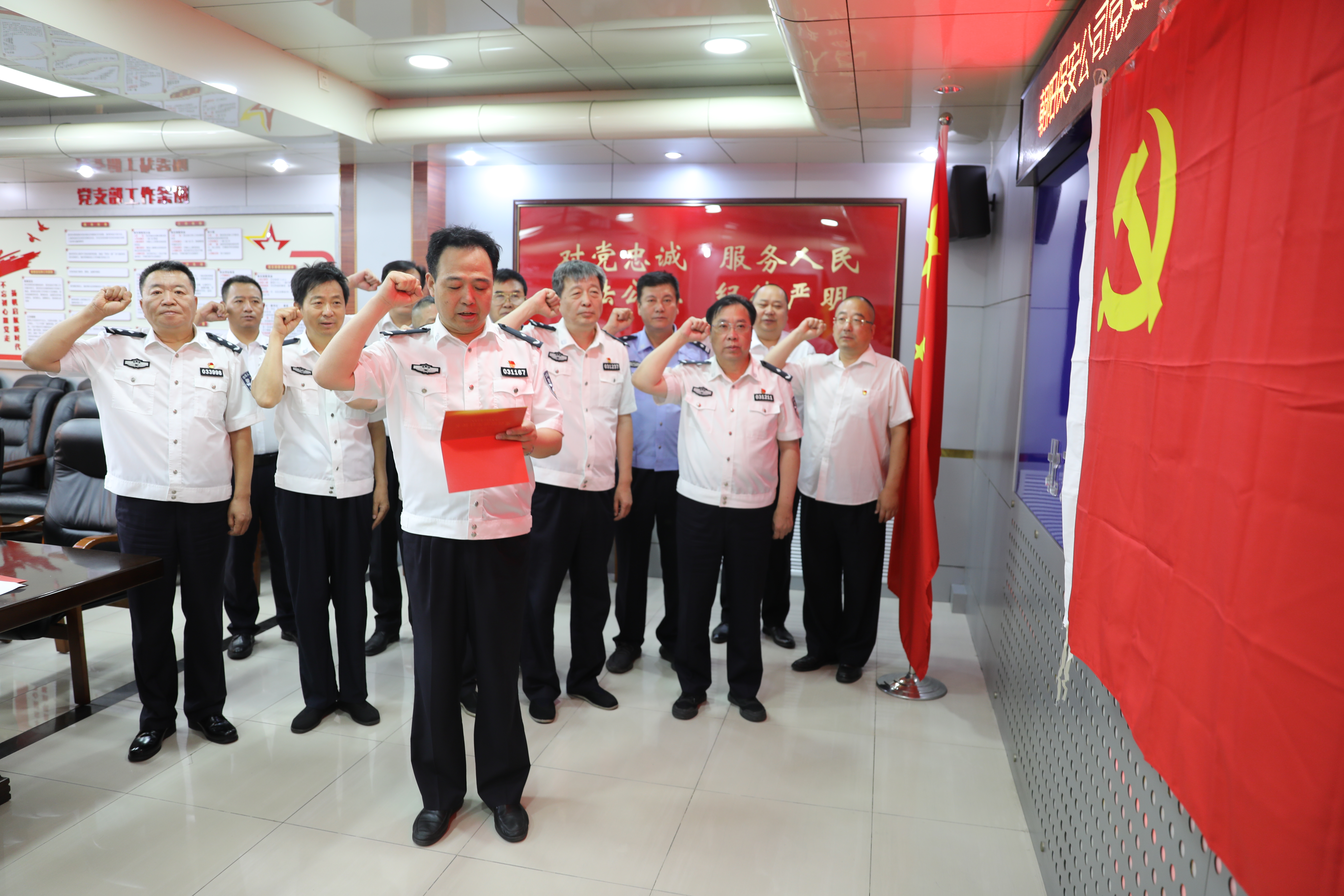 党支部书记南庆军代表公司党支部分别向“七一”前后入党的3名同志赠送了“政治生日”贺卡,并对全体党员提出殷切希望,要坚守初心使命,认真履职尽责,永葆共产党员的先进性和纯洁性,切实增强党员的荣誉感、责任感、使命感。并带领全体党员民警、员工党员重温入党誓词。