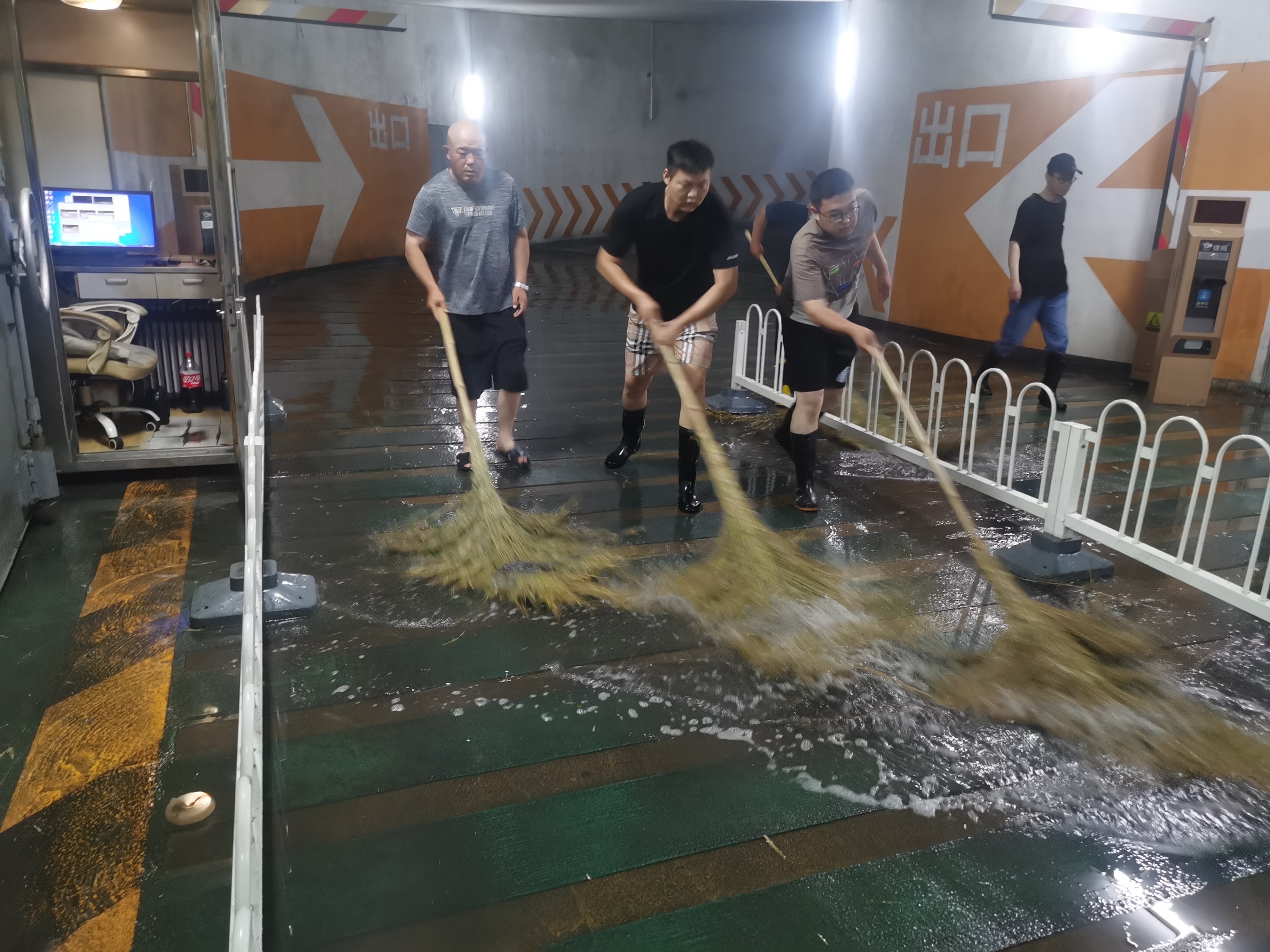 7月27日凌晨2时许,北京突降暴雨,雨水倒灌进利锦府小区地库,造成车辆无法正常进出。公司驻该小区值班队员巡逻中发现这一情况后立即上报,队长王春刚迅速启动应急预案,叫醒沉睡中的队员,快速投入到积水清理工作中。经过2个多小时的不懈努力,最终将地库积水清理干净,保证了地库出口的正常使用,地库内停放的车辆也未有任何损失。